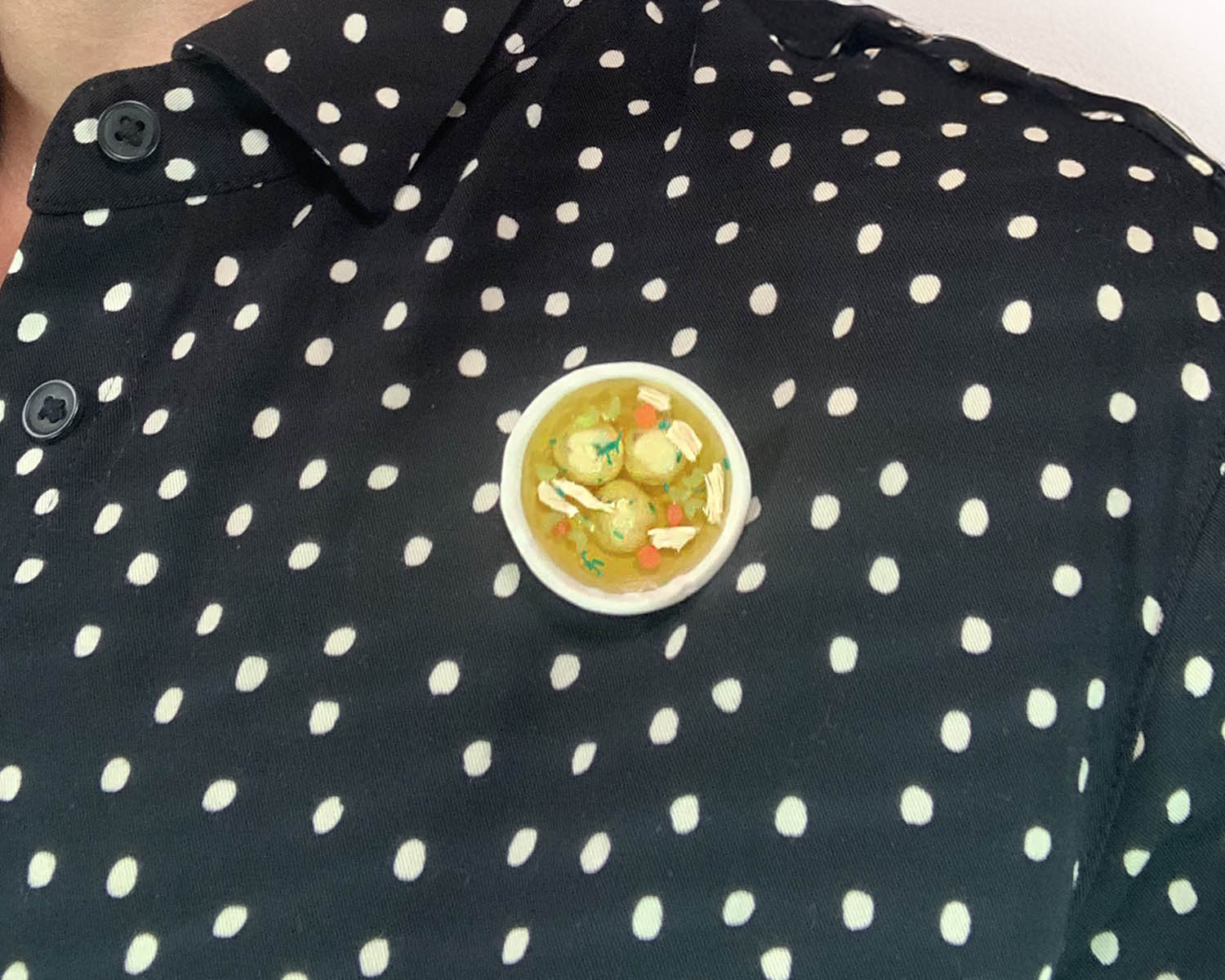 One of a kind bowl of matzo ball soup handcrafted from polymer clay and resin. Approx. 1.375" in diameter, colors and ingredients may vary. Also sold as a magnet!