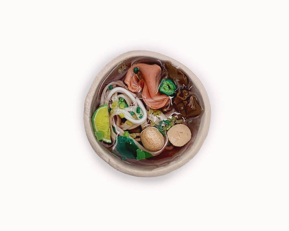 One of a kind bowl of pho bo handcrafted from polymer clay and resin. Approx. 1.375" in diameter, colors and ingredients may vary. Also sold as a magnet!