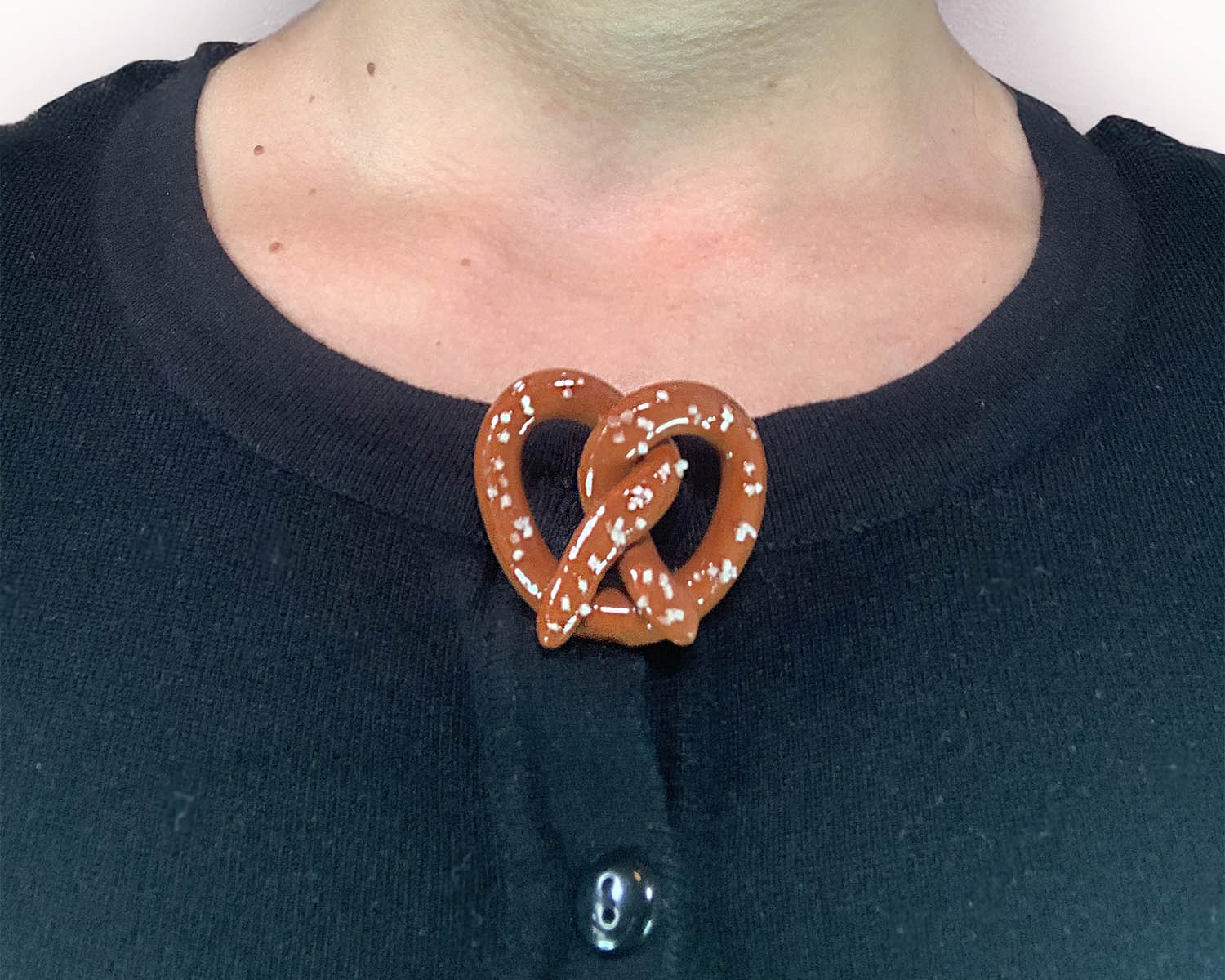 One of a kind handcrafted polymer clay salt pretzel. Approx. 1.25x1.25" to 1.5x1.5", colors and ingredients may vary. Also sold as a magnet!
