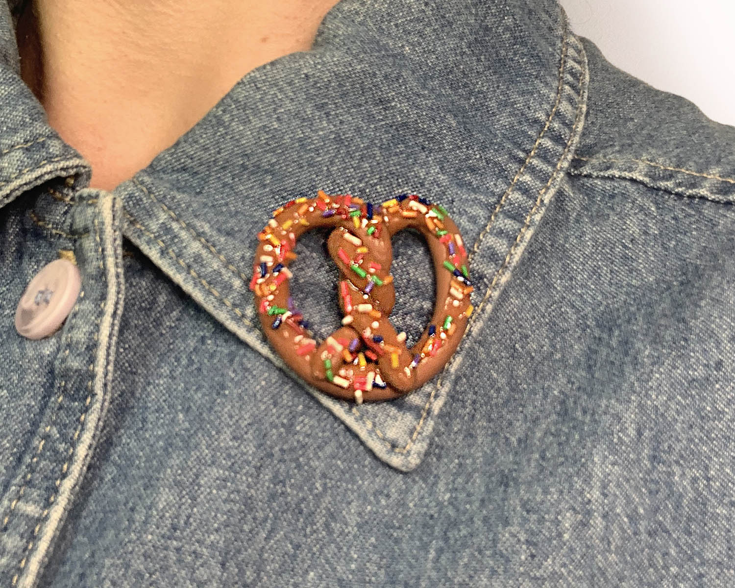 One of a kind handcrafted polymer clay rainbow sprinkle pretzel. Approx. 1.25x1.25" to 1.5x1.5", colors and ingredients may vary. Also sold as a magnet!