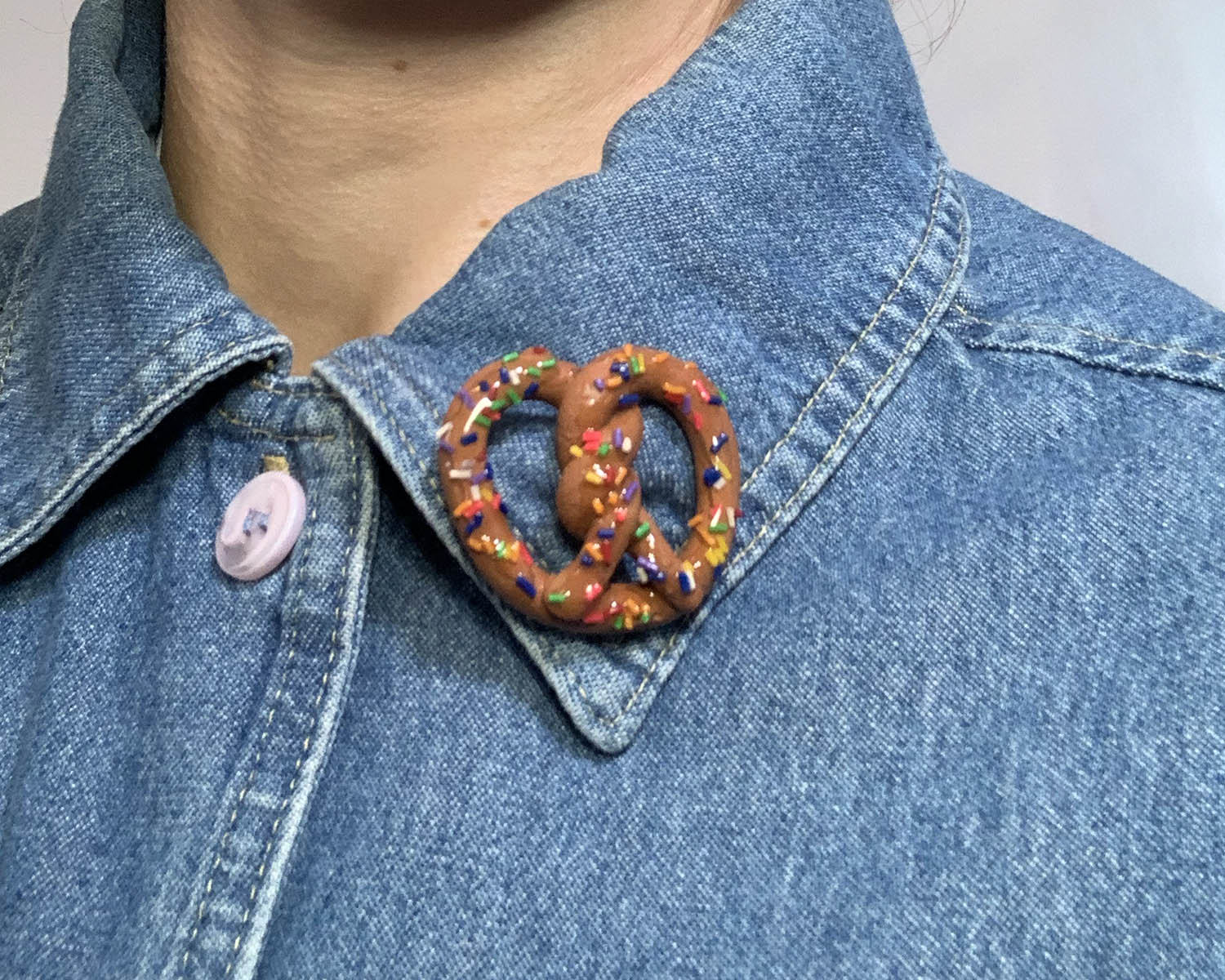 Rainbow Sprinkle Pretzel Brooch